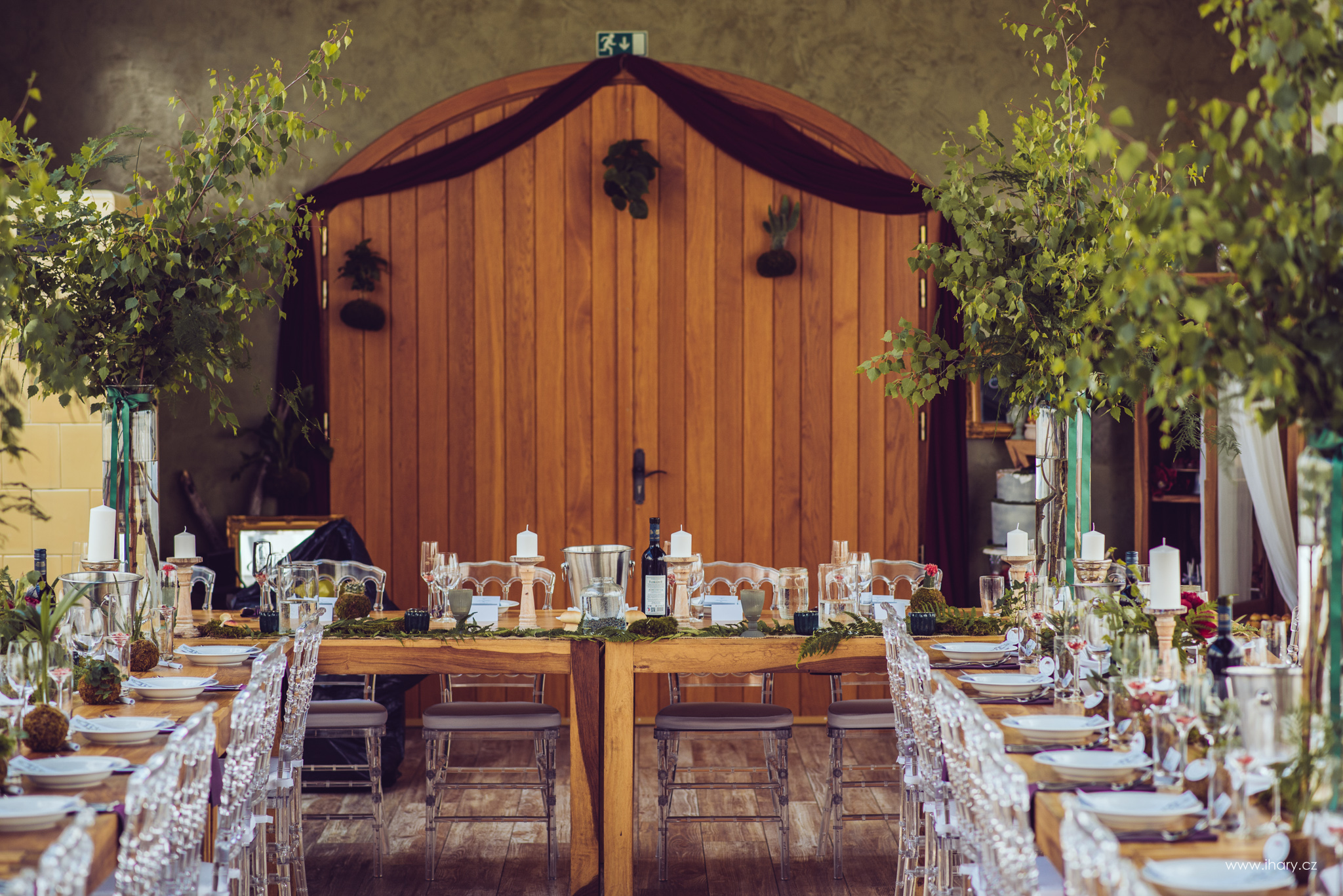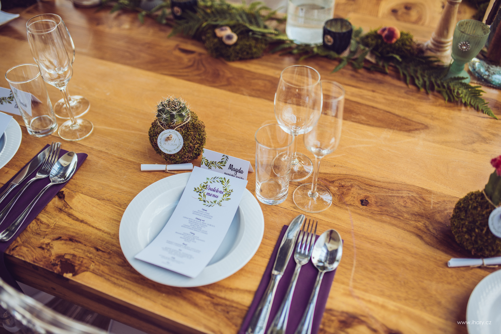 Tato svatba pro nás byla jako dělaná. Milujeme tento styl, mech, zeleň, kokedamy, no prostě všechno, co se přírody týče. Zadání od Kristy bylo dost jasné, měla jasnou představu, jak by výzdoba měla vypadat a my byly rády, že nám dala volnou ruku a my jí mohly vykouzlit tuto elfí lesní svatbu.